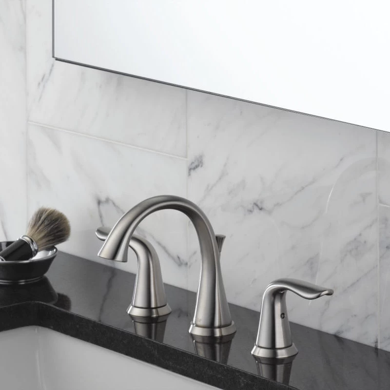 Product Features: Faucet Type: Lavatory ; Faucet Finish: Champagne Bronze ; Manufactured by Delta, Includes Full Warranty ; Spout Height: 3.625″ ; Spout Reach: 5″ ; Height: 5.875″ ; Number of Handles: 2 ; Faucet Holes: 3 ; Handle Style: Lever ; Includes Drain Assembly ; ADA Compliant: Yes ; Includes Valve