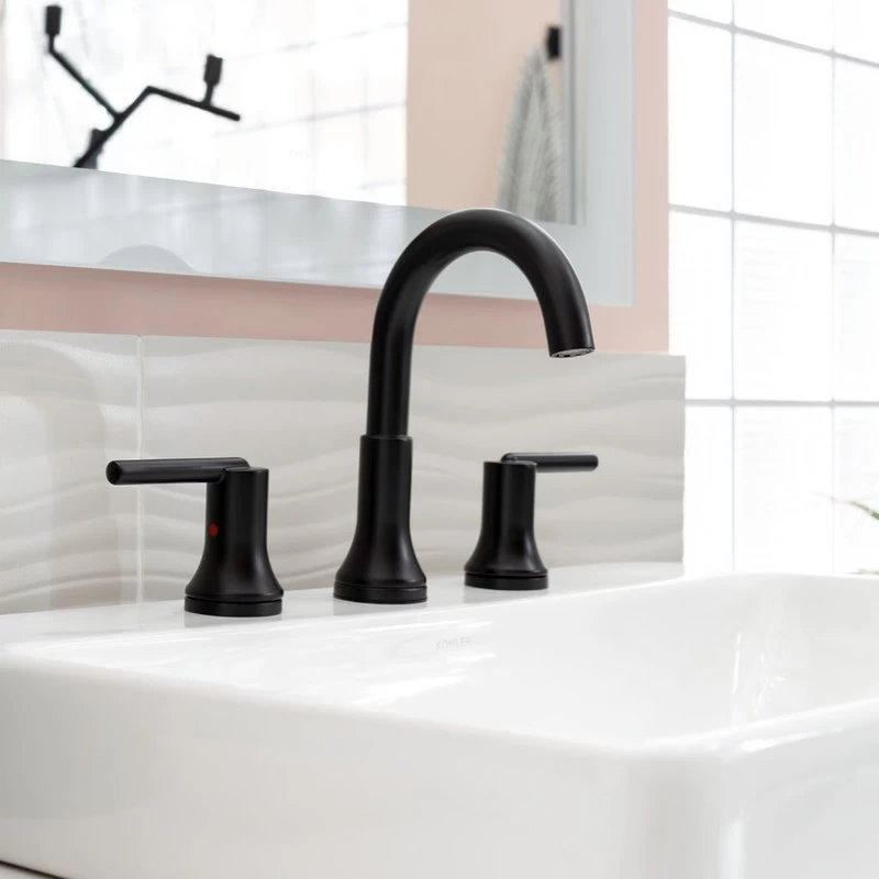 Product Features: Faucet Type: Lavatory ; Faucet Finish: Champagne Bronze ; Manufactured by Delta, Includes Full Warranty ; Spout Height: 4.937″ ; Spout Reach: 5″ ; Height: 7.75″ ; Number of Handles: 2 ; Faucet Holes: 3 ; Handle Style: Lever ; Includes Drain Assembly ; ADA Compliant: Yes ; Includes Valve