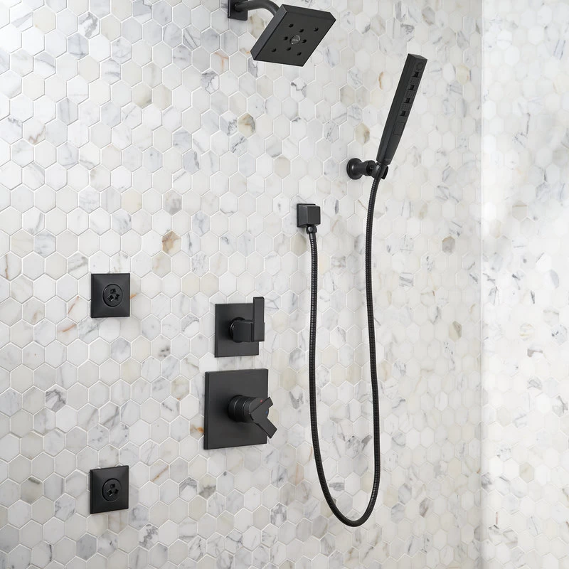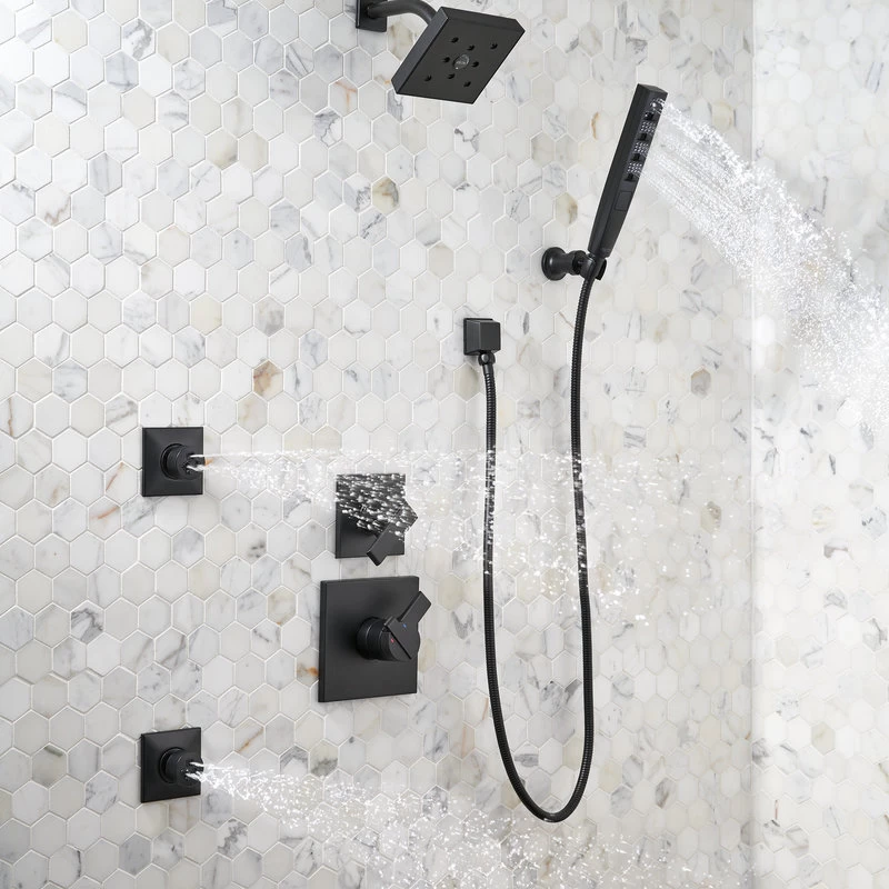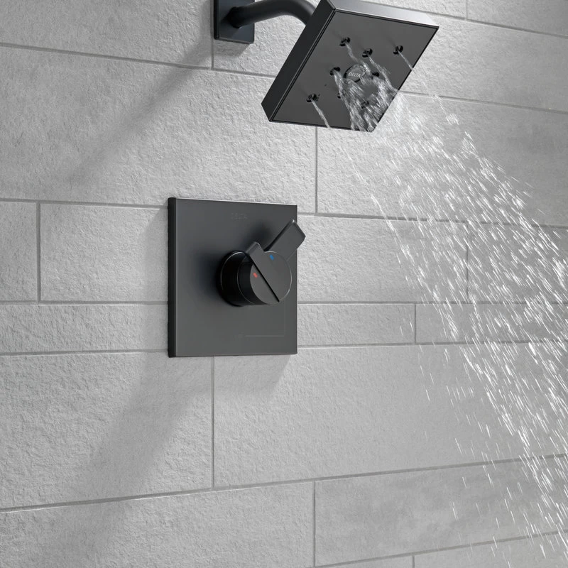 With defined geometric angles and edges, the Ara Bath Collection creates a streamlined look of contemporary elegance. Delta H2Okinetic Showers look different because they are different. Using advanced technology, H2Okinetic showers sculpt water into a unique wave pattern, giving you 3X the coverage of a standard shower head.* The end result is a shower that provides more coverage, more warmth and more intensity for a truly drenching shower experience. With separate handles for volume and temperature control, this Delta tub/shower provides a more refined showering experience. Simply set the water at your preferred temperature and turn the shower on or off with the volume control handle – without interrupting your set temperature. Delta pressure-balance valves use Monitor Technology to protect you and your family from sudden temperature changes. Matte Black makes a statement in your space, cultivating a sophisticated air and coordinating flawlessly with most other fixtures and accents. With bright tones, Matte Black is undeniably modern with a strong contrast, but it can complement traditional or transitional spaces just as well when paired against warm nuetrals for a rustic feel akin to cast iron. Delta WaterSense labeled faucets, showers and toilets use at least 20% less water than the industry standard saving you money without compromising performance.