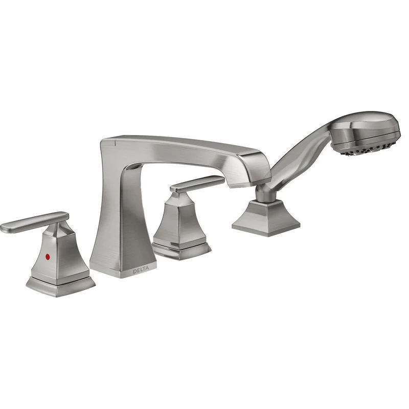 Complete your bath with a beautifully designed Delta roman tub faucet, meticulously crafted to turn heads and enhance your experience. The included hand shower makes this a versatile addition to your bath, perfect for rinsing off, washing loved ones and pets or keeping your tub clean. Brilliance finishes are durable, long-lasting and guaranteed not to corrode, tarnish or discolor. This Brilliance Stainless finish has subtle, warm undertones which make it an excellent match with nickel or stainless steel and is extremely versatile, complementing nearly any look, be it traditional, transitional or contemporary. You can install with confidence, knowing that Delta faucets are backed by our Lifetime Limited Warranty.