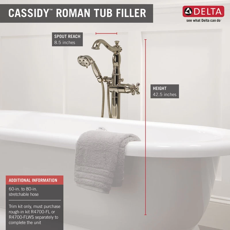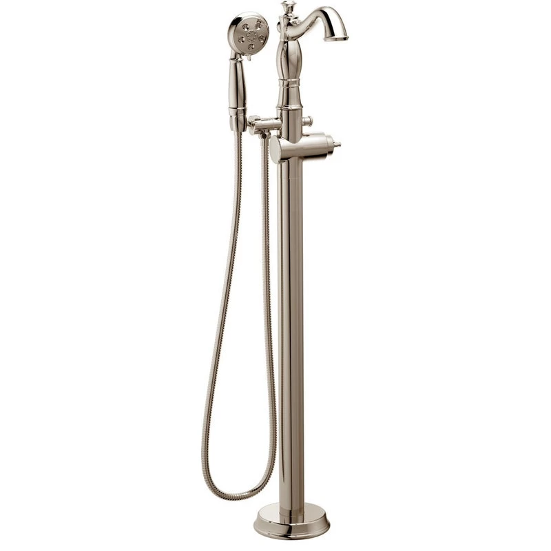 Complete your bath with a beautifully designed Delta roman tub faucet, meticulously crafted to turn heads and enhance your experience. The included hand shower makes this a versatile addition to your bath, perfect for rinsing off, washing loved ones and pets or keeping your tub clean. Delta H2Okinetic Hand Showers look different because they are different. Using advanced technology, H2Okinetic Hand Showers sculpt water into a unique wave pattern, giving you 3X the coverage of a standard shower head.* The end result is a hand shower that provides more coverage, more warmth and more intensity for a truly drenching experience. Designed to look like new for life, Brilliance finishes are developed using a proprietary process that creates a durable, long-lasting finish that is guaranteed not to corrode, tarnish or discolor. This glossy finish provides a delicate elegance that can make almost any room pop. The polished surface reflects back deep shadows from your space, creating contrast within the pale gold tones which takes on a new light from every angle. Brilliance finishes are durable, long-lasting and guaranteed not to corrode, tarnish or discolor, so you can enjoy a coordinated bath you’ll love to look at for life. You can install with confidence, knowing that Delta faucets are backed by our Lifetime Limited Warranty. *Coverage measured in accordance with EPA WaterSense Specification for shower heads, March 4, 2010.