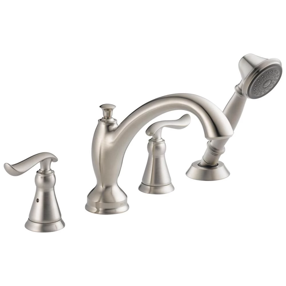 Complete your bath with a beautifully designed Delta roman tub faucet, meticulously crafted to turn heads and enhance your experience. The included hand shower makes this a versatile addition to your bath, perfect for rinsing off, washing loved ones and pets or keeping your tub clean. Brilliance® finishes are durable, long-lasting and guaranteed not to corrode, tarnish or discolor. This Brilliance Stainless finish has subtle, warm undertones which make it an excellent match with nickel or stainless steel and is extremely versatile, complementing nearly any look, be it traditional, transitional or contemporary. You can install with confidence, knowing that Delta faucets are backed by our Lifetime Limited Warranty.