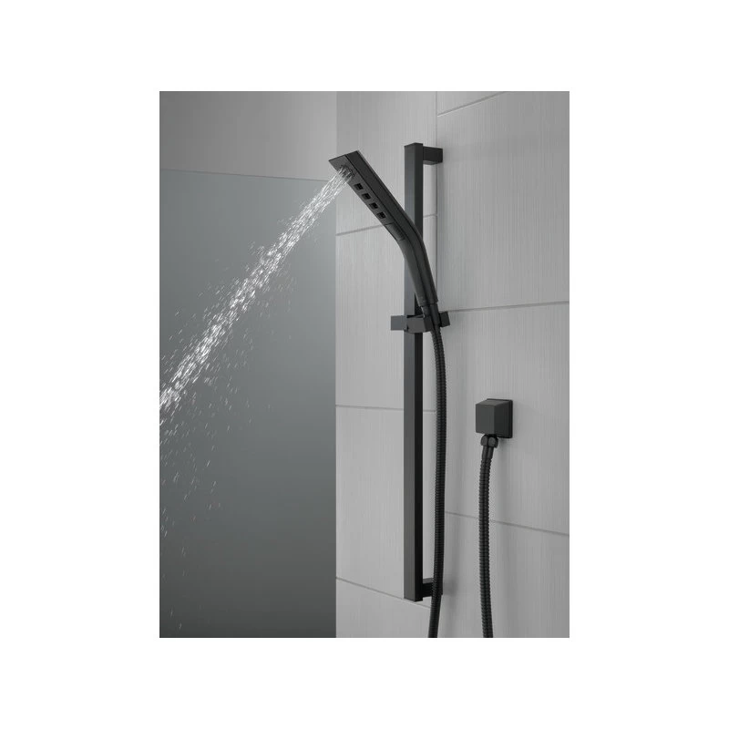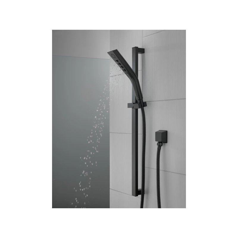The confident slant of the Pivotal Bath Collection makes it a striking addition to a bathroom�s contemporary geometry for a look that makes a statement. Experience a better shower with the control and flexibility of a Delta hand shower. Great for showering yourself or your loved ones and pets, as well as for keeping your shower and tub clean. Delta H2Okinetic Showers look different because they are different. Using advanced technology, H2Okinetic showers sculpt water into a unique pattern, giving you 3X the coverage of a standard shower head.* The end result is a shower that provides more coverage, more warmth and more intensity for a truly drenching shower experience. So go ahead and indulge, because now you can enjoy the feeling of more water without using more water. While other products may gather unsightly mineral build-up over time, Delta soft rubber Touch-Clean spray holes allow any mineral residue to simply be wiped away for an instantly refreshed look � with no need for soaking or the aid of chemical cleaners. The pause setting gives you ample space for shaving, lathering and other shower tasks, then easily restarts the water with the temperature where you left off. This spray setting helps you conserve water, so you can worry less about depleting your supply of hot water – and you help the environment too. Delta WaterSense labeled faucets, showers and toilets use at least 20% less water than the industry standard�saving you money without compromising performance.