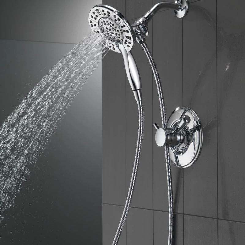 - In2ition™ 2-in-1 Hand Showers: Delta In2ition™ showers provide the flexibility of a hand shower without the extra upfront costs or lost ease-of-use. With a simple flip of the diverter lever, the detachable hand shower can be run separate from, or simultaneously with, the shower head. In2ition™ showers also offer multiple spray settings, including a pause feature which helps you conserve water.