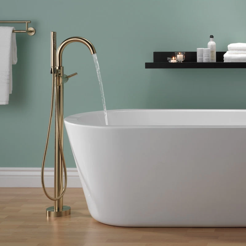 Complete your bath with a beautifully designed Delta roman tub faucet, meticulously crafted to turn heads and enhance your experience. The included hand shower makes this a versatile addition to your bath, perfect for rinsing off, washing loved ones and pets or keeping your tub clean. Designed to look like new for life, Brilliance finishes are developed using a proprietary process that creates a durable, long-lasting finish that is guaranteed not to corrode, tarnish or discolor. Take the chill out of contemporary with the eloquent warmth of Champagne Bronze in your bath. This vibrant, gold finish provides a vivid splash of contrast to your space for a look that’s simultaneously modern and nimble, able to pair elegantly with traditional, transitional and contemporary decor. Brilliance finishes are durable, long-lasting and guaranteed not to corrode, tarnish or discolor, so you can enjoy a coordinated bath you’ll love to look at for life. You can install with confidence, knowing that Delta faucets are backed by our Lifetime Limited Warranty.