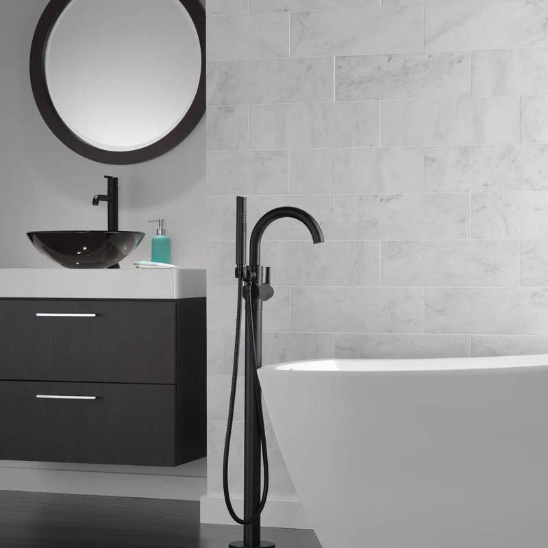 Complete your bath with a beautifully designed Delta roman tub faucet, meticulously crafted to turn heads and enhance your experience. The included hand shower makes this a versatile addition to your bath, perfect for rinsing off, washing loved ones and pets or keeping your tub clean. Matte Black makes a statement in your space, cultivating a sophisticated air and coordinating flawlessly with most other fixtures and accents. With bright tones, Matte Black is undeniably modern with a strong contrast, but it can complement traditional or transitional spaces just as well when paired against warm nuetrals for a rustic feel akin to cast iron. You can install with confidence, knowing that Delta faucets are backed by our Lifetime Limited Warranty.