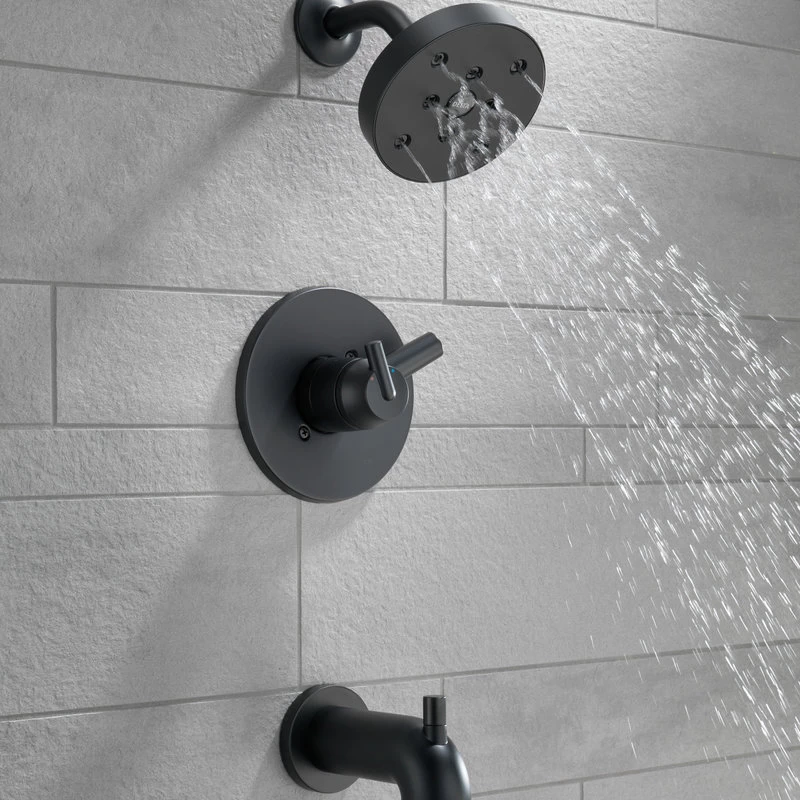 Inspired by the sleek elegance of modern European design, the Trinsic Bath Collection completes the look of any contemporary bath, from classic to rustic. Delta H2Okinetic Showers look different because they are different. Using advanced technology, H2Okinetic showers sculpt water into a unique wave pattern, giving you 3X the coverage of a standard shower head.* The end result is a shower that provides more coverage, more warmth and more intensity for a truly drenching shower experience. With separate handles for volume and temperature control, this Delta tub/shower provides a more refined showering experience. Simply set the water at your preferred temperature and turn the shower on or off with the volume control handle – without interrupting your set temperature. Delta pressure-balance valves use Monitor Technology to protect you and your family from sudden temperature changes. Matte Black makes a statement in your space, cultivating a sophisticated air and coordinating flawlessly with most other fixtures and accents. With bright tones, Matte Black is undeniably modern with a strong contrast, but it can complement traditional or transitional spaces just as well when paired against warm nuetrals for a rustic feel akin to cast iron. Delta WaterSense labeled faucets, showers and toilets use at least 20% less water than the industry standard saving you money without compromising performance.